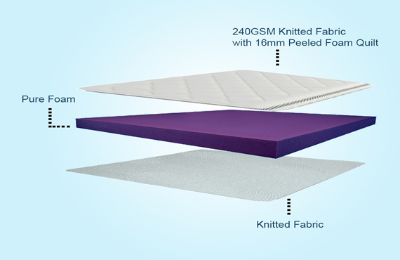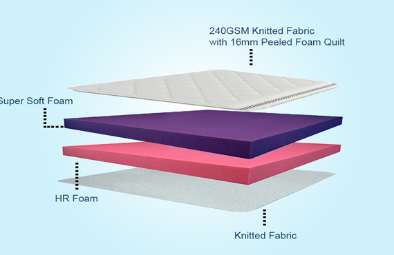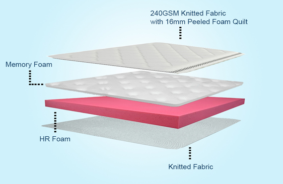 Cyrus Gold Mattress features a Pure Foam Mattress which is of 32 density, it features a soft comfort level for superior support, especially for those who are of low BMI. Made with pressure point relief technology, it increases comfort and helps with pain. It is made with antimicrobial fabric to reduce the chances of bacteria. We provide 240 GSM knitted fabric at the top and bottom.